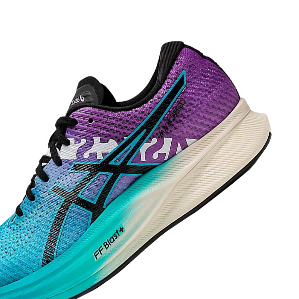 The MAGIC SPEED™ 2 EKIDEN shoe offers the energy you need to move towards a new personal best. We updated the fit and tooling to make the shoe more versatile for both tempo runs and races. The shoe's colorway draws inspiration from an Ekiden relay race. Key design elements include a sash detail on the side and a series of katakana characters. A full-length carbon and TPU plate are sandwiched in the midsole to propel your foot forward. This helps create a smoother and more propulsive rebound during the toe-off phase of your stride. The midsole's top layer is reconstructed with FF BLAST™ PLUS cushioning. This makes your stride feel even more propulsive while keeping the shoe lightweight.