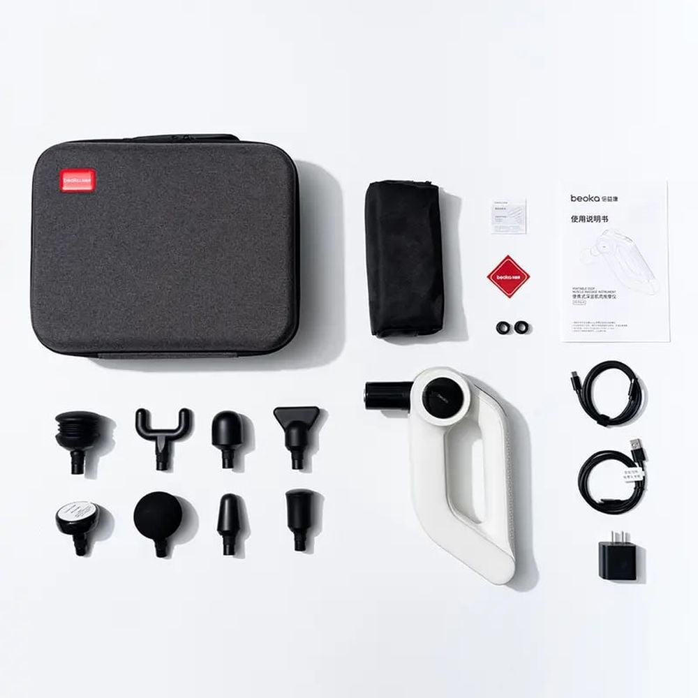Portable massage gun: The small size and light for personal use Each of our massage guns comes with its own sturdy carrying case, so you can carry it with you and use it easily anytime, anywhere. The professional massage gun includes 5 different types of heads. The luxury model even includes 8 different types of heads. You can choose the suitable massage head according to your demand. Take care of every muscle group in an all-round way