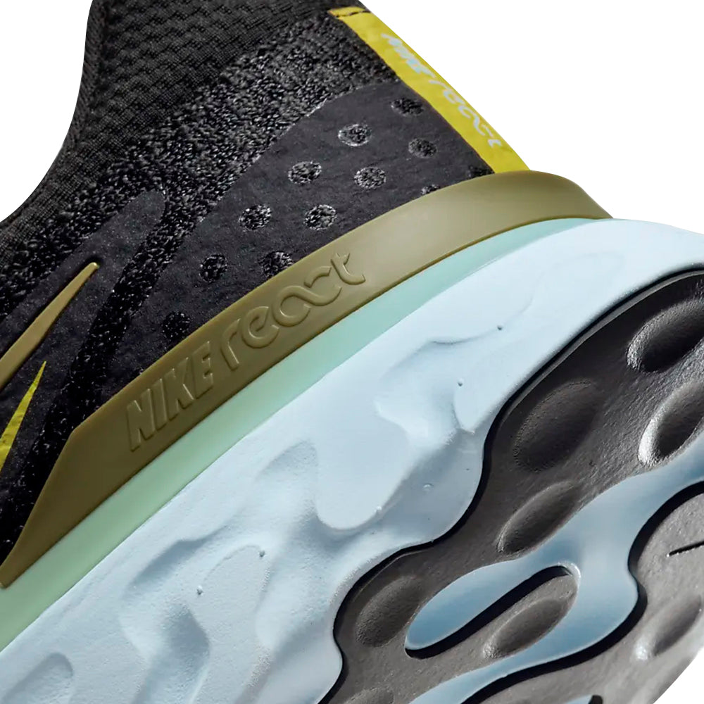 The sole has a unique rocker design that's shaped for support during all 3 phases of your stride. It feels flexible when you push off the ground, provides a smooth ride when your foot moves forwards and cushions when you land. Nike React technology provides that soft yet responsive sensation with every step. The bottom is wider for more stability on contact.