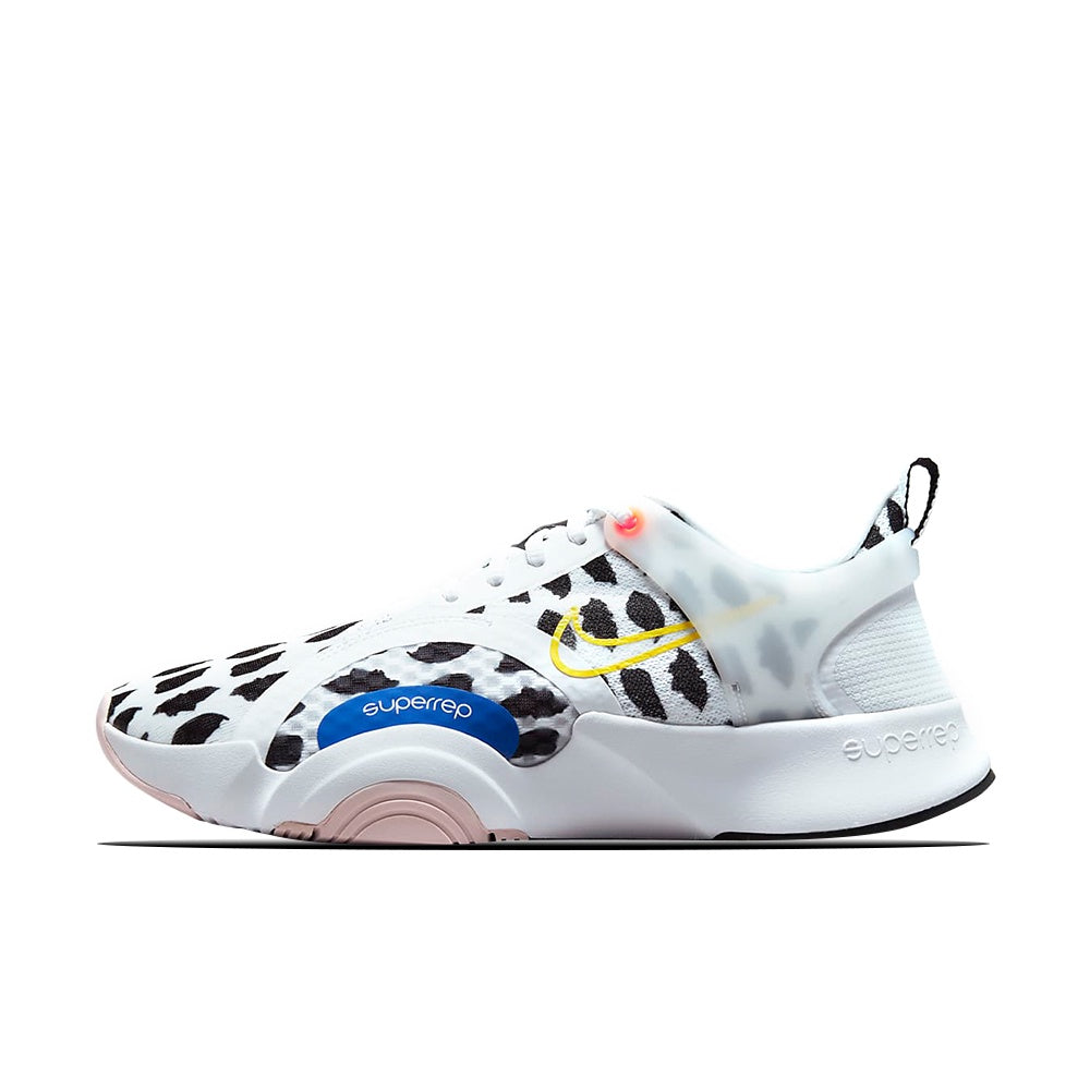The Nike SuperRep Go 2 with speckle accents combines lightweight cushioning underfoot and breathable mesh up top to get you moving comfortably in circuit-based fitness classes or while streaming workouts at home. With the supportive arc on the side and extra flexibility in the sole, you're ready to go for 1 more rep.